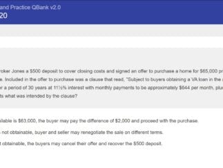 The videos and questions asked thereafter do not always match up. The course outlines you are asked to fill out and chapters also do not match up, which is counterintuitive to the learning process and frustrating. Workbook reference figures sometimes don't exist. Random question boxes popped up in the courses unannounced that don't apply. The final exams I took have variations of questions that I had not seen before, which I feel shouldn’t have been the case--they should have come up in some variation in quizzes before. As someone else mentioned, 5%(-8%) of the “correct” quiz and test answers are actually incorrect. One example: "The timeline is July 1 through September 30--with THIRTY days in each month [...]." In another example, Net Loan Proceeds are a debit to the broker, but in a T/F question in a Unit Review Test, the "correct" answer is that it's a credit to the broker. It makes you wonder to what degree you’re learning things as wrong or right.