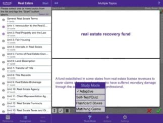 Kaplan helps students prepare for the state real estate test via tools like: