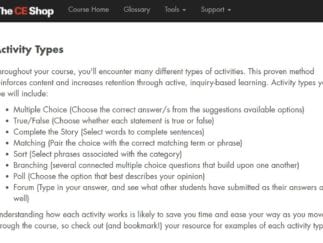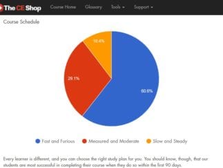 I'm at the last part of the CE Shop course and just have the final test to take. I like it so far. Whenever I had questions or needed help there was always someone to chat with really quickly and they always answer my questions. They give you all the tools you need throughout the course and pass the test.