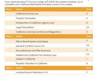 It clearly states the amount of time allotted to complete the course, and contrary to what the disgruntled reviewers think - there are legal reasons behind this that have been set up by real estate regulatory authorities, and the school is mandated to comply.